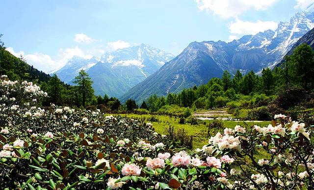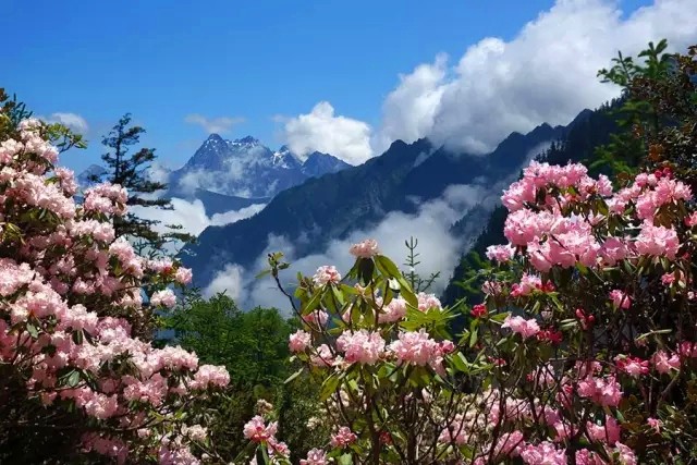 五月,毕棚沟的花季烂漫而来,漫山遍野的羊角花竞相开放!将毕棚沟装扮成一个色彩鲜艳的花海,圣洁雪山脚、蓝天白云下、清澈海子旁、青山绿水间、随处可见!