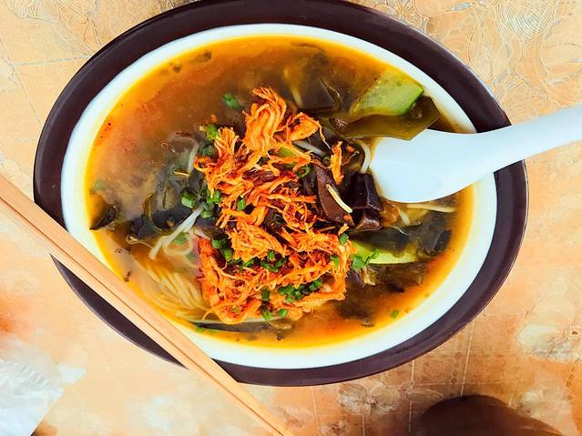 为了减轻高反,决定尽快去稻城县,那里的海报低一些,应该会好很多。从景区出来,正对面有一家重庆小面,进去之后吃了一碗鸡丝米线,真的特别好吃。