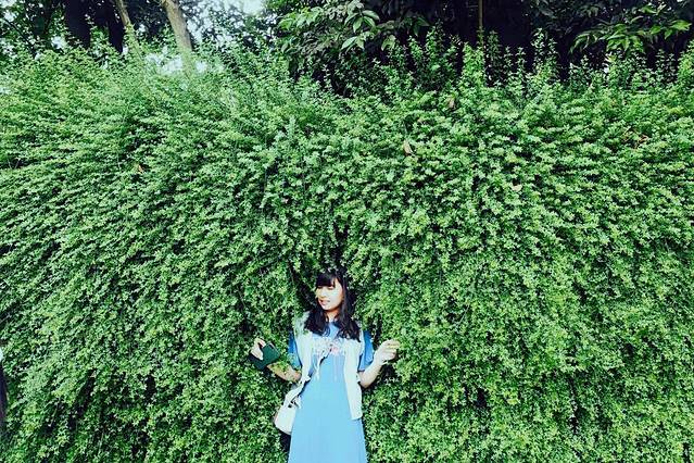 再往前走,沿着路边有一排绿油油的,也不知道是什么植物,好多人在这里拍照。一开始还不敢往下躺,害怕自己太重,砸出一个坑来,哈哈、试探性的躺上去,软软的特别舒服,拍出来的效果也是非常棒了。