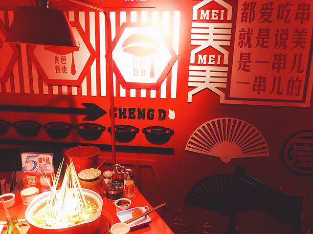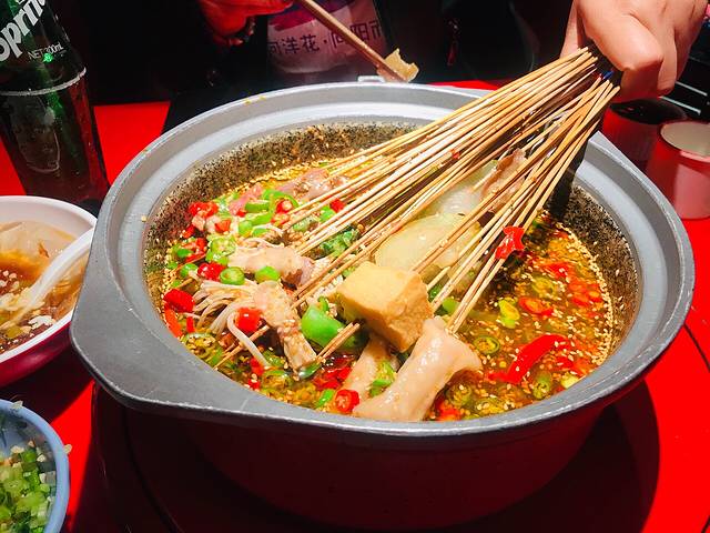 在春熙路基本没逛就出来了,准备找地方吃饭。远远的看见有一家串店,生意不错,排队也不需要等很久,尝尝成都的串串。
