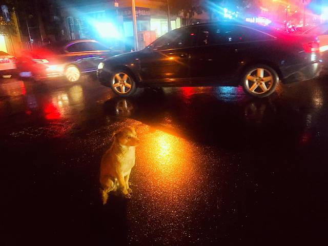 看完电影已经10点多了,滴滴排队400多号,搜了搜距离,还是走回去吧。路边遇见这么一只小可爱,它就蹲在这个十字路口中间,有车过也不躲,下着雨也不找地方避雨,感觉像是在等主人吧,特别可怜的一小只。
