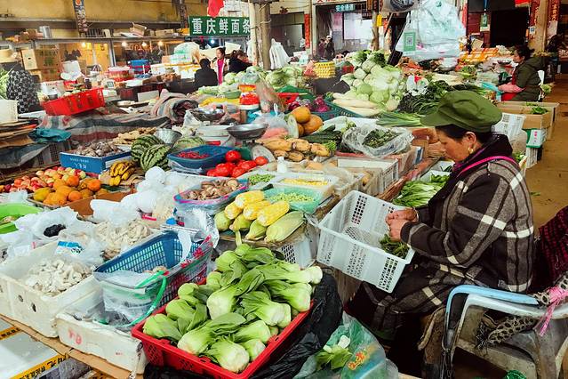 溜达溜达就走到了烟火气息最浓的菜市场,想看看当地的人平常都吃什么,就走了进去。基本上卖的菜都跟我们平常吃的差不多,不知道做法上有什么不一样,晚上去尝尝正宗的藏餐。
