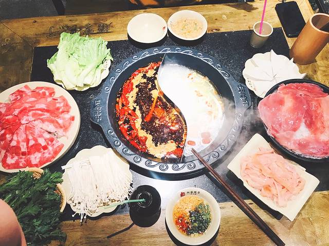 解放碑附近的火锅店都非常火爆,要等很久。我们就搜了一家离酒店比较近的,评价也不错,就溜达着过去了。在门口排队大概等了半个小时左右,终于吃上了饭。