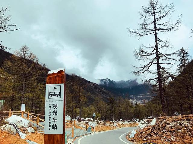 我们住在亚丁村2号站,坐大巴车上去应该是需要40分钟左右吧,我记不清了,这段路简直是我的噩梦。从上车开始,我头晕的就已经不听使唤了,迷迷糊糊看到旁边的景色真的非常美,烟雾缭绕的,但是一睁眼就晕。我和会会姐中间隔了一个过道,想提醒她我们在2号站下车的力气都没有。下车之后到酒店,正常走2分钟就到的路,我现在已经想不起来怎么过去的了。