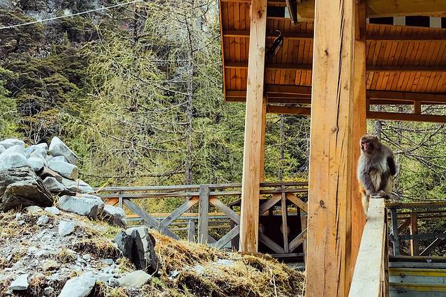 现在就只有一个念头,我要下山,我要下山。趴在栏杆上等车,一扭头就看到了这小家伙在我后面,吓我一跳哈哈。很多人下来给它们喂食物,小猴子也越聚越多,看着它们心情好了一些。
