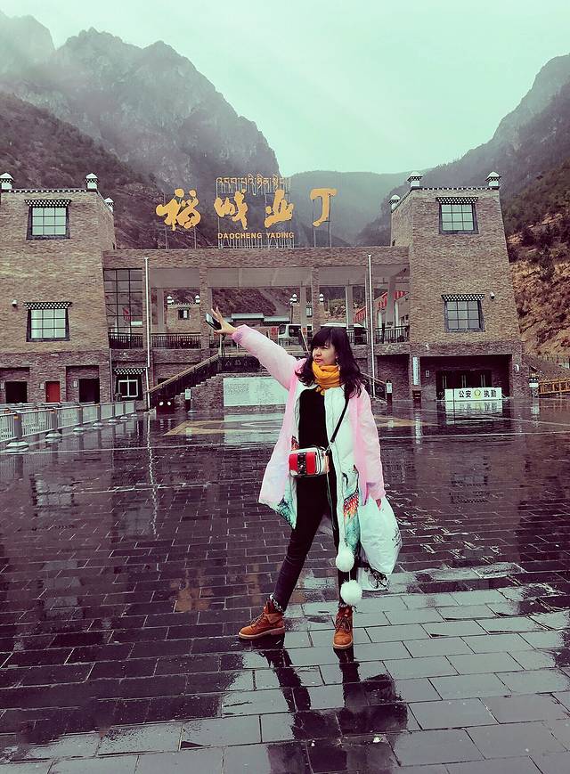 下午3:00左右,终于进去景区,跟我的稻城亚丁合张影,粉嫩嫩的小雨衣竟毫无违和感。顺便说一句,大家买雨衣的时候最好看一下,我脑袋大,这个雨衣对我来说一点用都没有,根本盖不住脑袋,哈哈。本来路上就受了凉,这会淋雨之后感冒又加重了,接下来的路程简直是场噩梦。
