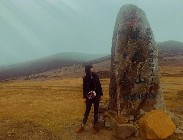 走到波瓦山的时候,会会姐因为高反已经开始难受了。我暂时还没什么反应,就跟着大家一起下车了,刚才还蓝天白云的,这会儿外面竟然下起了雪,虽然很开心,但是这个善变的天气也是很厉害了。