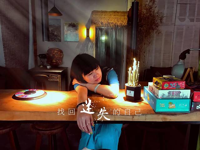 屋里唱歌的小姐姐终于消停会了,麻溜的拿上东西来屋里躲会。里面的灯光是暖暖的黄色,也很适合拍照哦。