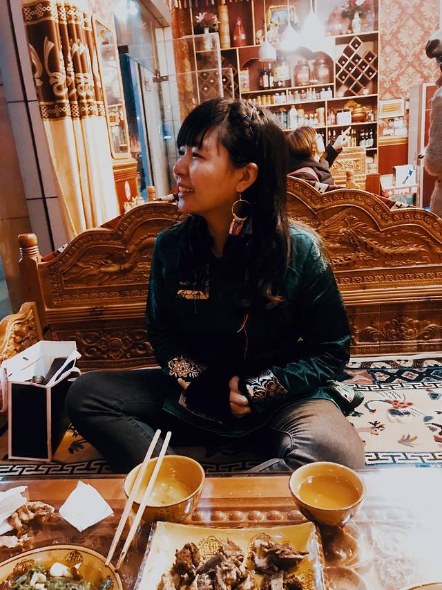 给会会姐买了扛高反的药,回去之后正好赶上电视播美食节目,一会就受不了啦,带上会会姐,去尝尝当地的藏餐。