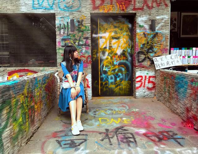 走过这个地方之后有一个小门洞,过去之后就是另外一番天地了。这里有点像过去的厂房,门上和墙上有很多涂鸦,很适合拍照哦。