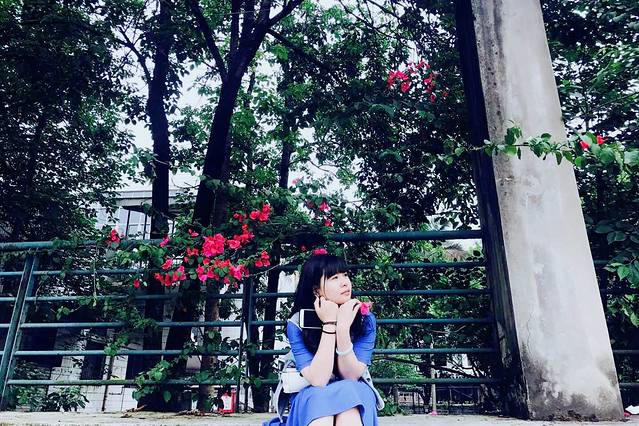 逛了半天也累了,到操场里面坐在台阶上休息一下 ,后面正好有一枝花,闹着要会会姐给我拍照,满足了我的这个小要求,哈哈。