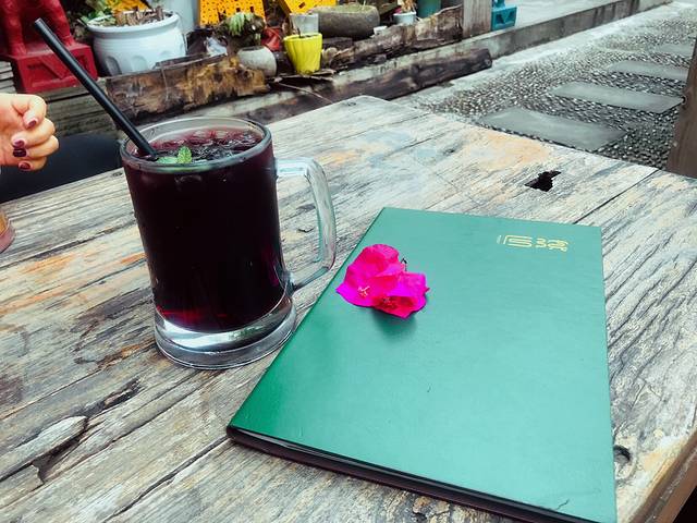 整个小院子装修很有特色,看似不经意摆放的东西,随手一拍都很有感觉。本来想坐在屋子里面,结果有两个小姐姐在唱歌,这个歌声我真的。。。。。。。服务员姐姐一直给我们道歉,说她们也是客人,没有办法,让我们体谅一下。