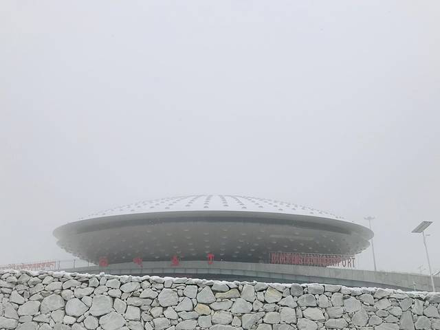 第二天5点多,小哥哥来接我们去机场。从县城到机场大概1多小时的距离,出发的时候天气还不错,走着走着就看到山上慢慢的在变白,才知道是下雪了。越走天气状况越差,临近机场的时候整个天都下白了,飞机肯定是延误了。