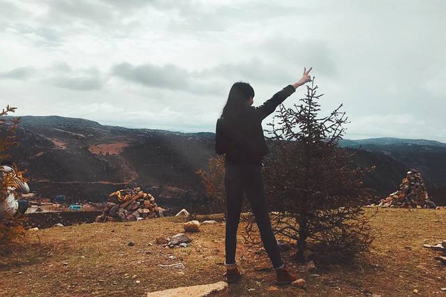下了车之后就一直在台阶上坐着,起来走了两步还是难受,就决定返程。感觉是用生命拍了这张照片,哈哈。后来整理照片的时候才想起来,我不是去看冲古寺了吗,坐着车也上去了,寺呢,寺在哪呢,走丢了吗?我真的不记得我见过他,于是自己坐这笑了半天。这一趟旅行也是挺奇葩的,哈哈哈。