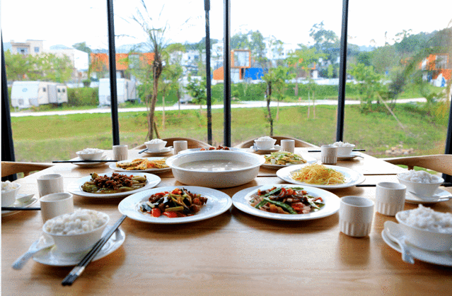 餐厅四周的自然风光非常好,大自然的色彩给空间带来清新的气息,让餐厅仿佛融入于大自然中一般,在就餐时可以感受鸟语花香。