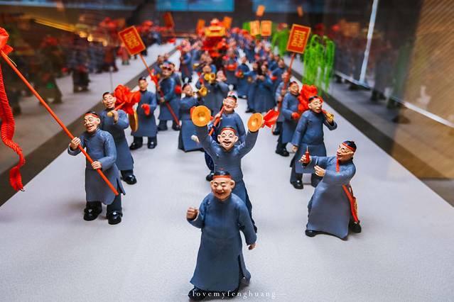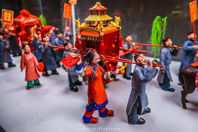 这些憨态可掬的泥塑再现了“十里红妆嫁过来,八人大轿抬进来…..”一支200人的婚嫁娶亲队伍,生动再现了当年十里红妆迎亲的壮观场景。
