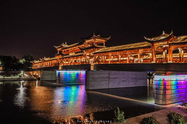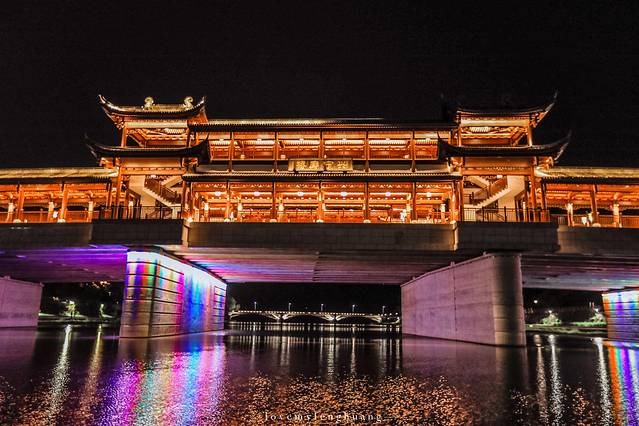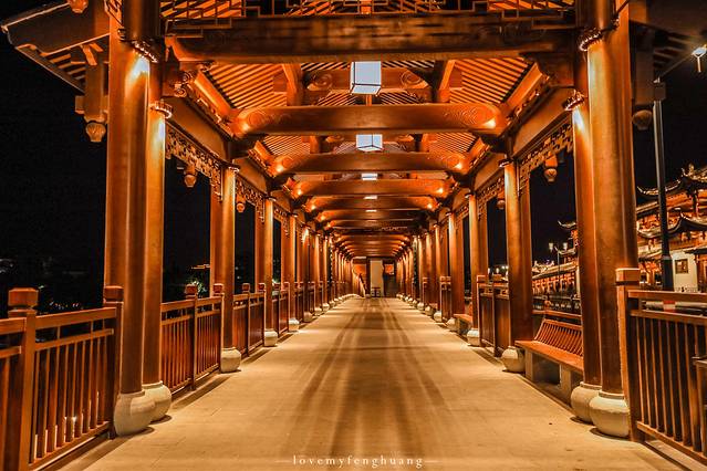 兴宁廊桥它不但好看,还是宁海市重要的交通要塞,这座全长150米,宽36.8米,桥内设置双向4车道,两侧各有宽5.2米的人行道和3.5米的非机动车道,而且还可以步行到桥的二楼,俯瞰的视野更加好。