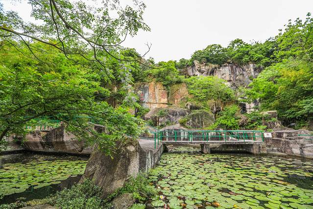 宁波伍山海滨石窟国家矿山公园位于浙东沿海中部的三门海畔,由14个窟群组成,占地面积2.32平方公里,800多个形态各异的洞窟,有的形如巨钟顶如覆锅,四壁如桶;有的形如古代军旅帐幕,左右相通,洞洞相连,曲折回环,幽深莫测。