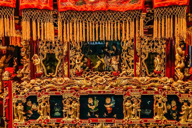 映入眼帘的一顶大红轿子“万工轿”,不同于普通的轿子,这台轿子做工精巧,花轿采用木质雕花,朱漆铺底饰以金箔贴花,远远望去金碧辉煌,犹如一座微型的宫殿,让人叹为观止。