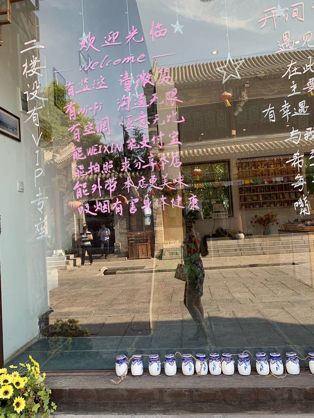 睡到自然醒,本想逛逛古城的早晨,谁知道退完房就要十一点了。约的荷田家已经到酒店门口来接了,瞬间备感欣慰。坐上电瓶车,一路去到客栈。荷田家给我安排在四号院拉开窗帘就是景色,很不错。放下行李,出去觅食了。