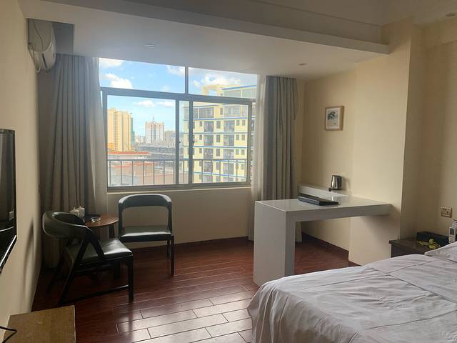 一天一夜,我算是把周边吃的逛的都走遍了哈哈哈,太知足,住在这里最开心的事是这里的海南小吃特别多,都是当地的特色小吃,下午茶,猪脚饭……酒店斜对面有一个夜市,里面的小吃特别特别多,味道也都很赞。酒店位置很好找,临街,出行特方便,出门就有公交车站,距离国贸商圈也不远,都有公交车直达。性价比很高,一百出头一晚,房间很大,配备齐全呀,烧水壶,24小时热水,空调,洗浴用品,电视,五星标配的床上用品,热情服务的前台小姐姐和店长。