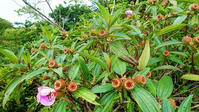 今天徒步的路线是从西涌沙滩附近的西贡村,全程八公里大概需要五六个小时,爬过七八个山头经过抛狗岭到半天云村,摘点野生的捻子吃。捻子学名叫桃金娘,初秋时节成熟,果实有点像小酒杯,青而黄黄而赤赤而紫,变成紫色发黑就成熟了,但是据说吃太多第二天会大便困难,不要问我怎么知道的。下图就是传说中的捻子啦,不要跟山茶花搞混哦。