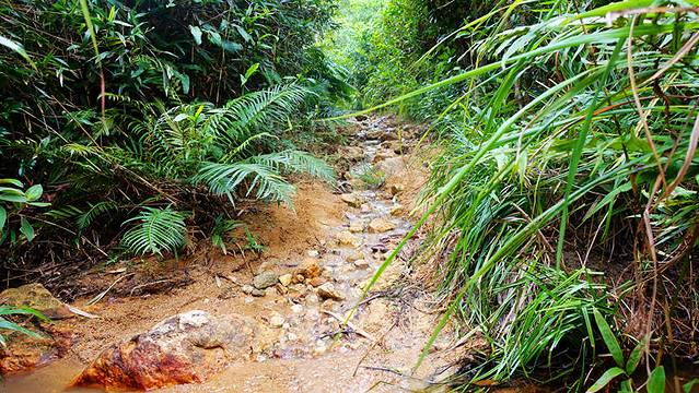 走过香樟树后在尽头左拐然后过桥,沿着村里小巷往山上走,登山口附近有大鹿径的起点牌子,每隔500米就有一个标距柱,最开始需要爬半个小时的上坡山路,大部分是比较容易走的青石路。不过路边捻子不多,而且大部分都没有成熟。