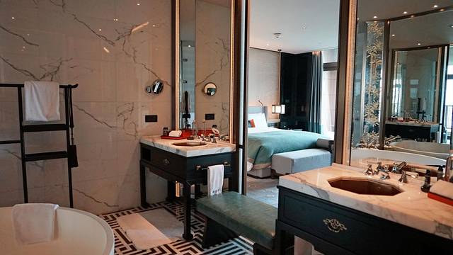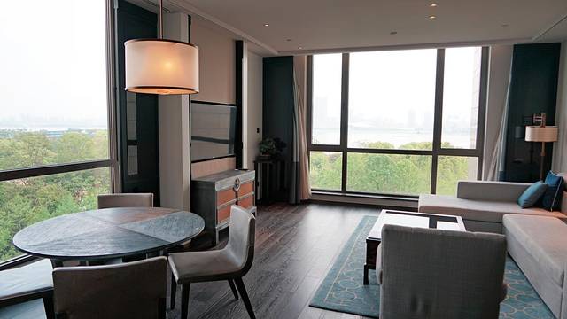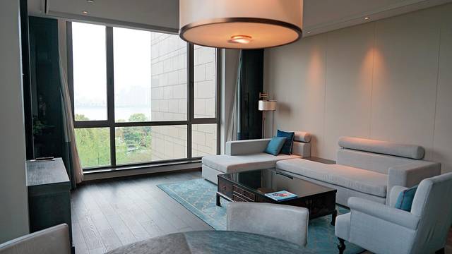泛海钓鱼台酒店共有258间客房,其中147间可以一览钱塘江景,另有270度江景的豪华套房,拥有宽敞的卫浴空间和步入式衣帽间,及面宽近3.5米的江景阳台。