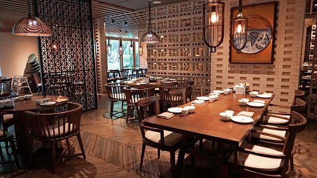 【品聚·杭州】餐厅位于酒店的一楼,半开放的厨房让宾客可以看到厨师制作菜肴的过程,整个餐厅的氛围略带点市井气息,适合年轻白领随意小歇或聚餐。