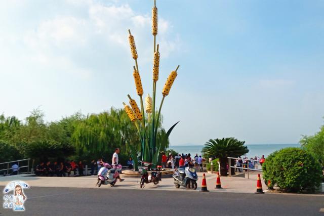 进入公园之后,映入眼帘的便是「湖天一线」的美景和偌大的招牌独立于碧波之上…