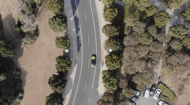 工作日时,这条路上车辆不算太多,很容易便可以拍到一张无人乱入的照片。