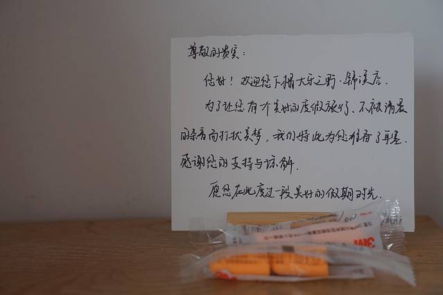 外表刚健设计感十足,但房间里都是让人觉得温暖舒适的原木装潢。床头上的手写卡片,开启了一段温馨之旅。