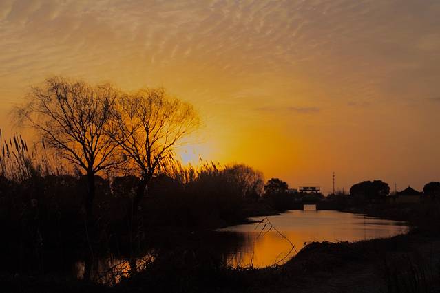 夕阳下,稻田的光影非常美妙,即使是在有点单调空旷的冬季,也被这一束阳光带来的美好深深触动。