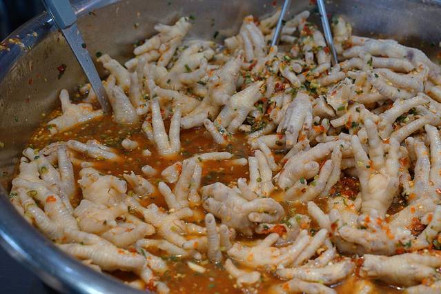 黎里古镇,便是这辣鸡脚的发源地。古镇入口处的王记辣脚,经营多年,一大盆色泽鲜艳的辣脚叫人垂涎不止。初入口,蒜香十足,再细细咀嚼,几乎尝不出辣味,反而是鲜甜的味道逐渐占了上风。