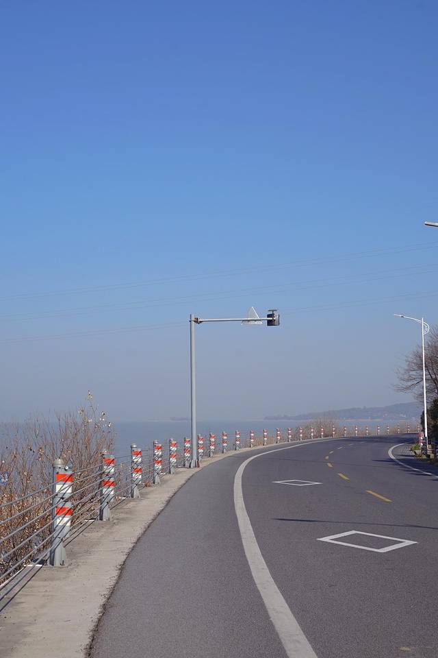 位于苏州东山景区,驾车驶过白马庙和丰圻大桥,在一片饭店集中的地方,就是“小镰仓”的取景地。依湖而建的马路蜿蜒着伸向远方,路边是红白相间的隔离带,斑马线连接起道路的两边,视线远方,就是一望无际、宁静湛蓝的太湖。