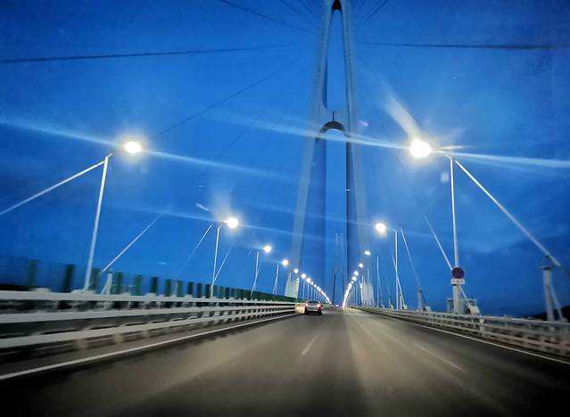 返程时行驶至桥上此段,想起6个小时前曾车泊脚下几十米的地面,心涌一丝别样感觉。