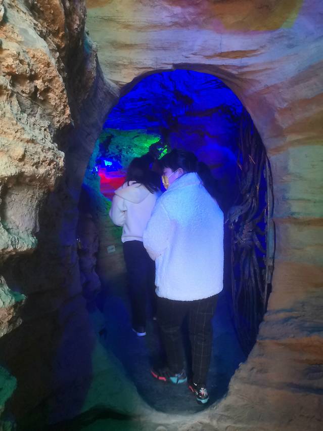 进入景区后,直走不到100米左转上楼梯后,可看到第一个游玩设施玻璃滑道,现场工作人员验票后会给分配防摩擦裤子或裙子及防滑手套,以防在滑道滑行过程中摩擦衣服,还能减缓滑行速度,保障安全,整个滑到滑下来大概有5分钟左右。接着滑道的第二个游玩设施是喊泉,每个人可玩80s,不过一般不到10s中大家都飙到最高音,喊泉高度一度超过对面的外婆桥了。喊泉旁边就是来空洞入口,进入来龙洞如隧道探险一般,洞中光影交错,游客可边找寻来龙洞出路,边参观洞中奇景,总的下来穿过整个来龙洞需要20分钟左右。从来龙洞出来后沿着楼梯往上走就看到了玻璃栈道,穿上防滑鞋套后,可走上玻璃栈道观看远处及脚下的风景,风大的话,还能感受到外婆桥在空中微微晃动,很是惊险刺激,慢慢的走过玻璃栈道大概需要20分钟左右。玻璃栈道紧挨着滑索,过年期间游客比较多,排队玩滑索大概得排半个小时左右,而实际滑索只用时不到一分钟。