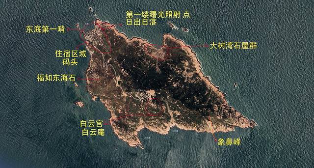东福山最靠东,距离主岛最远,这儿的游客也是非常多的,是第一缕阳光洒到的地方,这次没去,商业气息应该比青浜岛重。