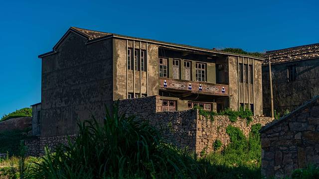 大树 湾石屋群是当地海派石屋群的典型代表。依山势而建的渔村石屋错落有致,疏密分布,有着极强的抗台抗风作用。远远眺望,整片荒弃的石屋群遗世独立于岛的一角,磅礴而神秘。
