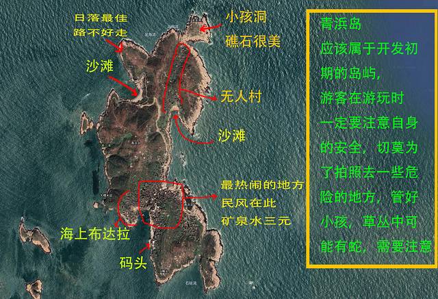 岛上基本没怎么开发,住宿的旅馆也很少,所以来的人也比较少。不过最有名气的“海上布达拉宫”景观就在此岛上,还有个“西风湾海滩”是三个岛中条件最好的,想游泳的话来这里最合适,其他两个岛都没适合游泳的海滩。