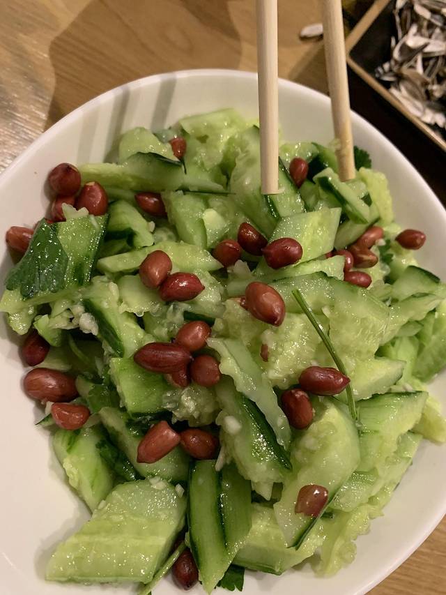 凉拌菜也是特色,几个人抢着吃完一盆又上一盆。
