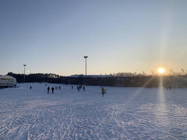 太阳下山天也冷了,我们准备撤了,去看冰雕!就是滑雪场边上。