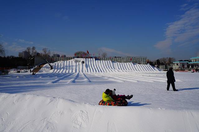 但我们这一趟是来玩的,不是来看皇家陵园的,公园内其实是有一大片的冰雪场地,非常方便附近的居民来消遣娱乐。可以先看一下视频。