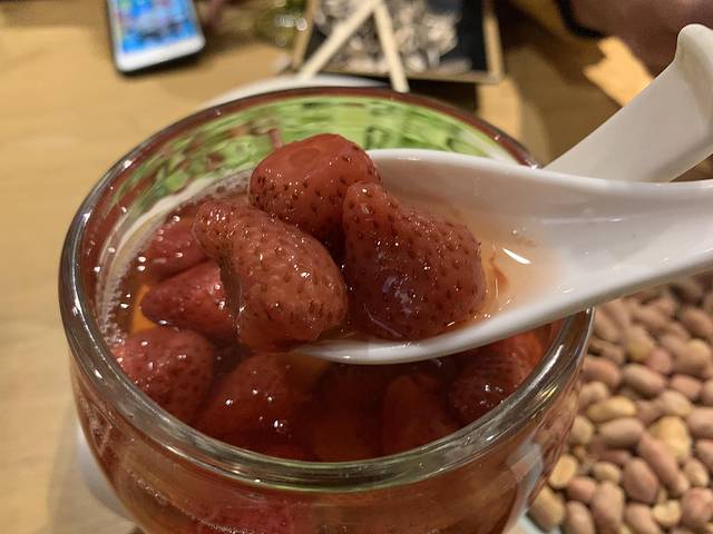 甜品,都是草莓,几乎是我一个人吃的,汤都被我喝完了。