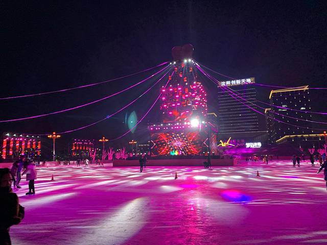 哈哈哈,看着这颜色是不是很梦幻,是当地斥巨资打造的梦幻溜冰场。边上其实就是辽博,逛完辽博,其实就可以来这儿溜个冰了,工具租一下好像是十块钱。记不得了。只顾着玩了。另外,音乐超嗨。