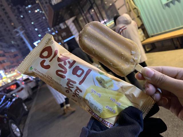 两个人还买了冰棒吃,这个很好吃,是韩国朋友推荐的。里面有一个小年糕。