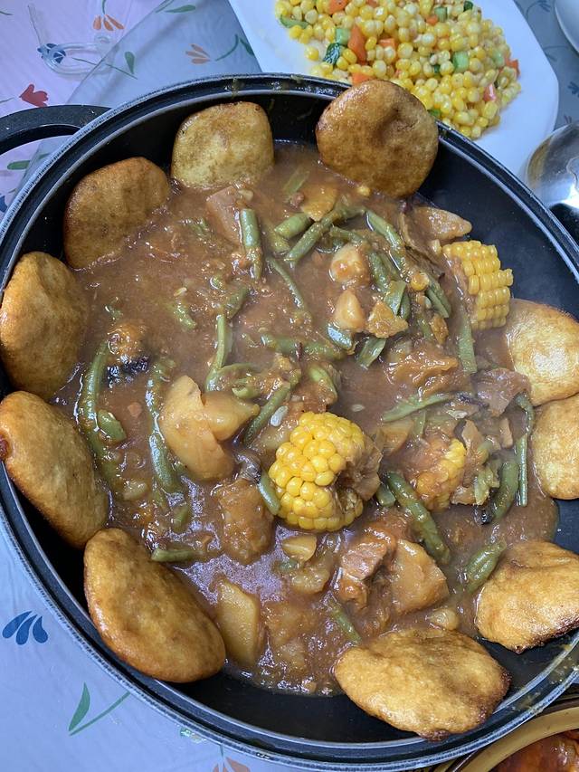 土豆牛肉(猪肉)豆角玉米,这我觉得去东北必吃的。