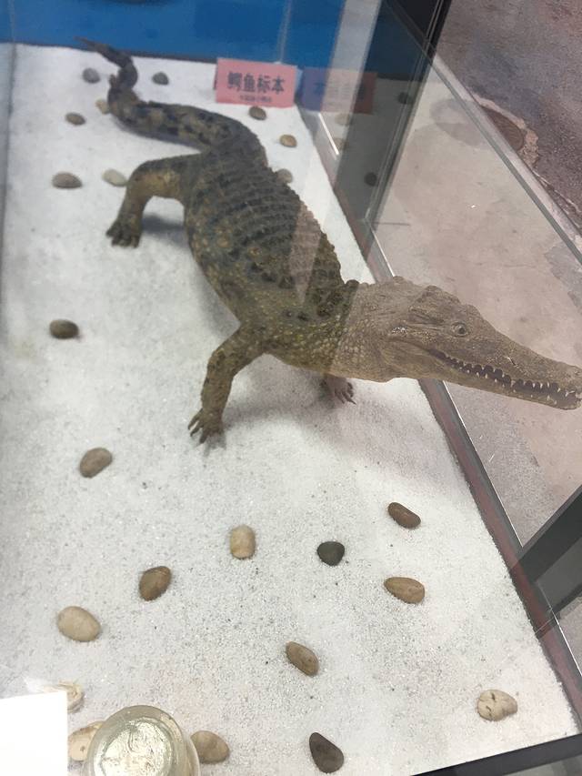看完钱塘江潮,我们就返程合肥了,途经长兴服务区停下休息,看到了服务区里面有鳄鱼标本。一打听,原来长兴是扬子鳄之乡。