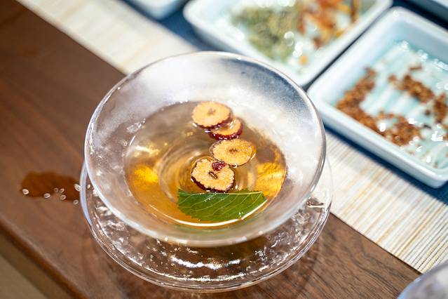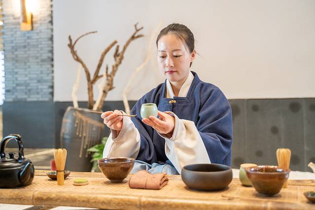 径山脚下有一处主题公园,是纪念茶圣陆羽、研习陆羽文化而建的陆羽泉文化主题公园。这儿有一泉水,是陆羽茗茶而用的,还可现场体验泡茶。