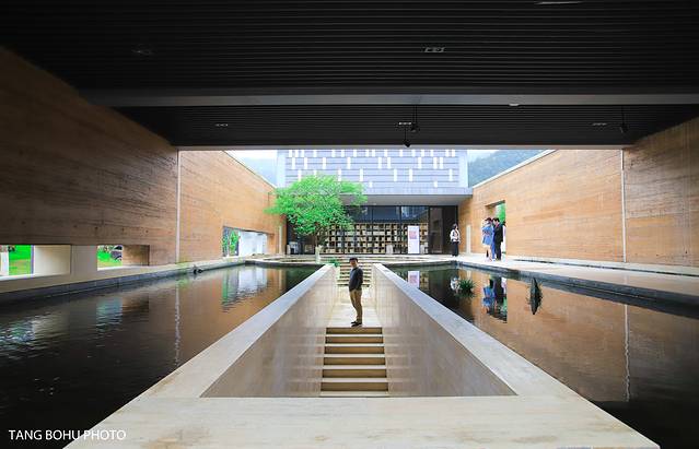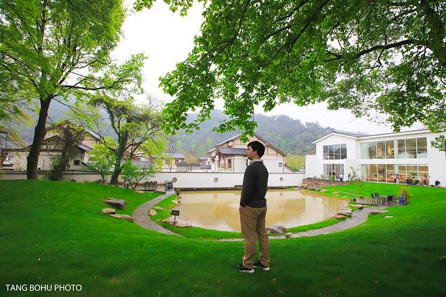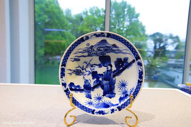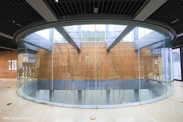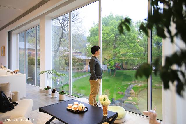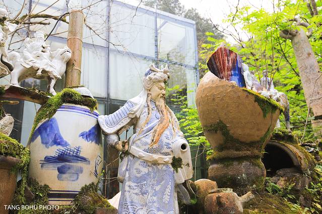 二楼这里真的非常适合拍照,一边可以欣赏陶瓷艺术品,一边可以欣赏窗外的景色,二楼超大的玻璃落地窗外面的景色一览无际,绿色的草坪,还有小池塘,古树等景色尽收眼底。